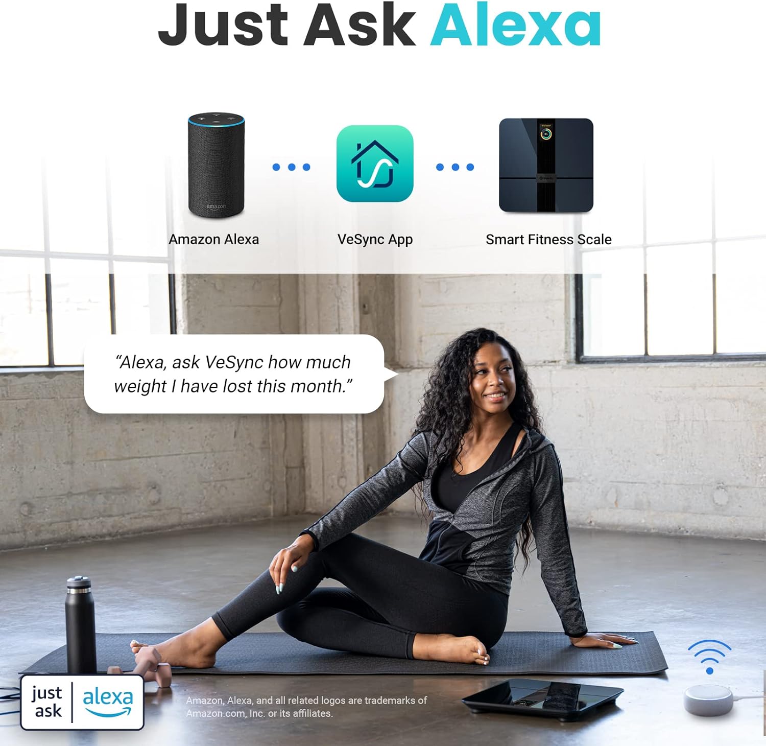 - 𝙅𝙐𝙎𝙏 𝘼𝙎𝙆 𝘼𝙇𝙀𝙓𝘼: "Alexa, ask VeSync how much weight I have lost this month." Keep the motivation going with hands-free voice control
